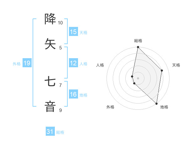 降矢 七音さんの外格は19画の1点!