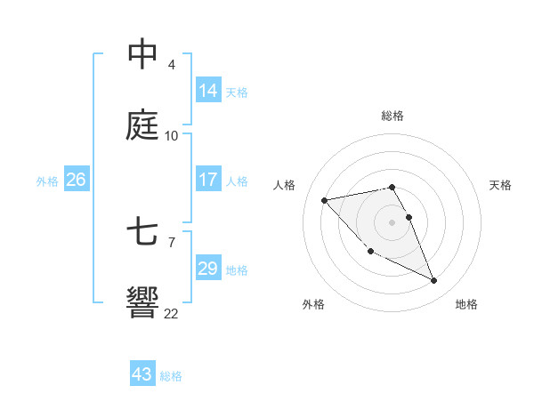 中庭 七響さんの天格は14画の1点!