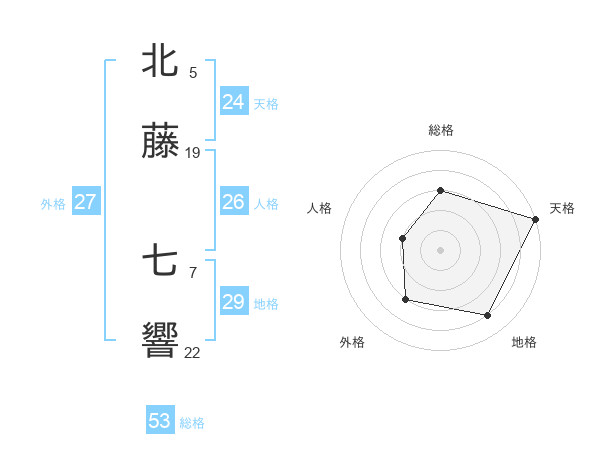北藤 七響さんの天格は24画の5点!