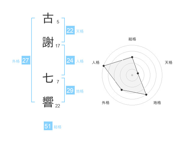 古謝 七響さんの総格は51画の3点!