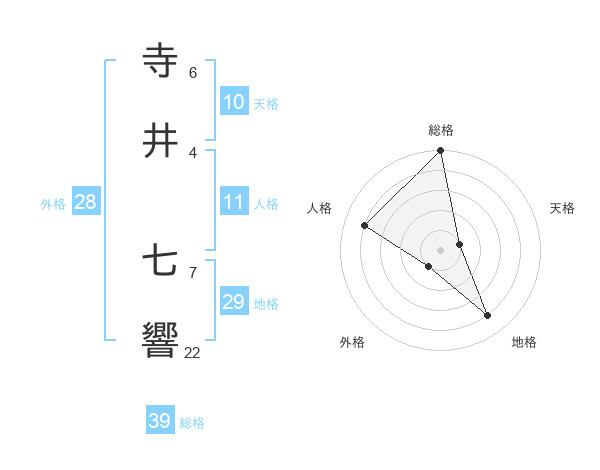 寺井 七響さんの総格は39画の5点!
