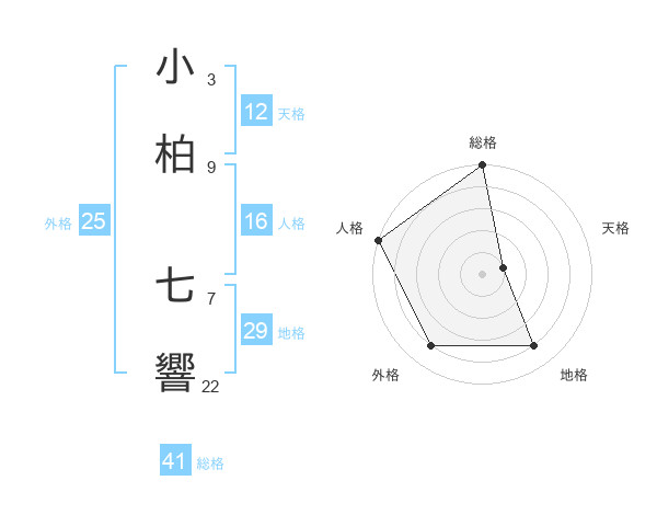 小柏 七響さんの地格は29画の4点!