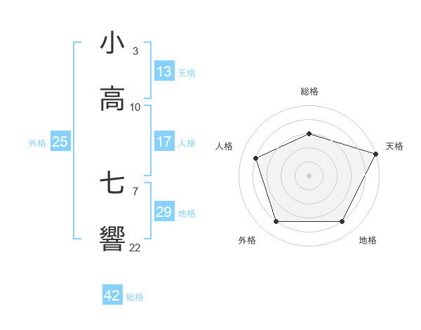 小高 七響さんの天格は13画の5点!