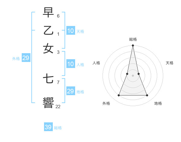 早乙女 七響さんの総格は39画の5点!