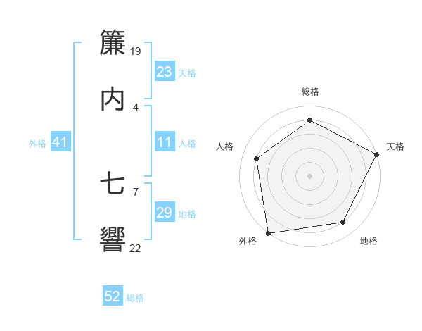 簾内 七響さんの総格は52画の4点!