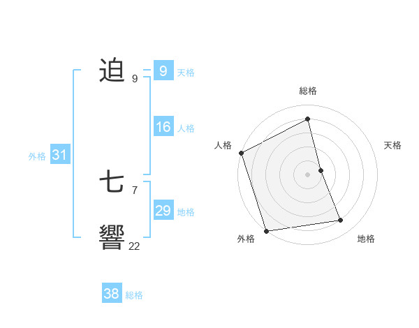 迫 七響さんの総格は38画の4点!