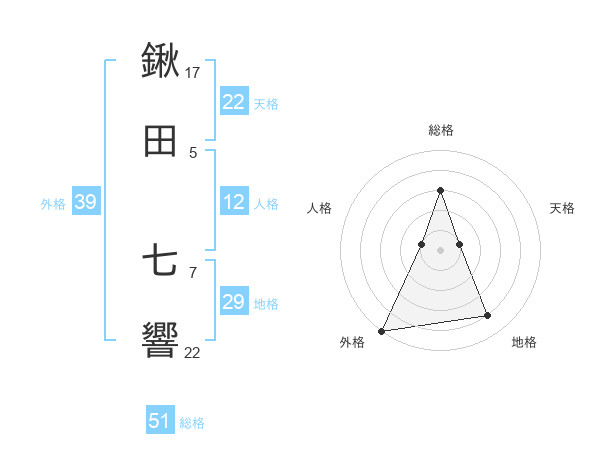 鍬田 七響さんの総格は51画の3点!