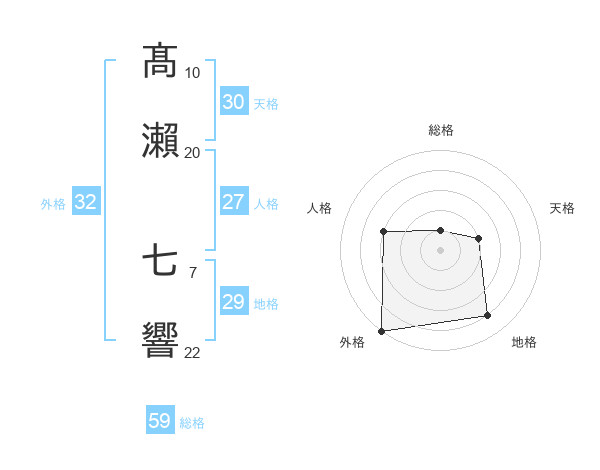 髙瀨 七響さんを姓名の画数から五運を鑑定
