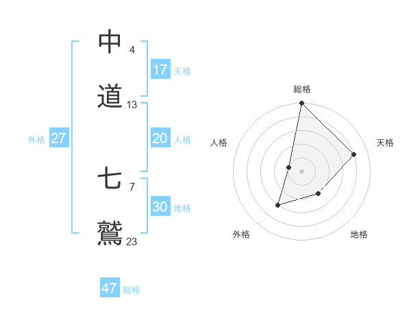中道 七鷲さんを姓名の画数から五運を鑑定