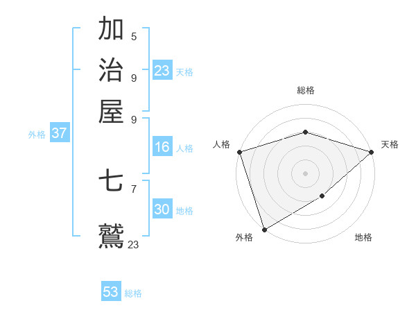 加治屋 七鷲さんを姓名の画数から五運を鑑定