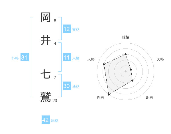 岡井 七鷲さんを姓名の画数から五運を鑑定