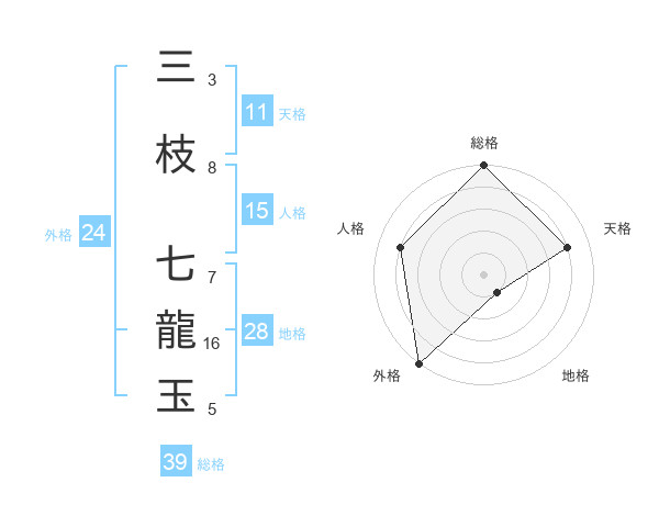 三枝 七龍玉さんの総格は39画の5点