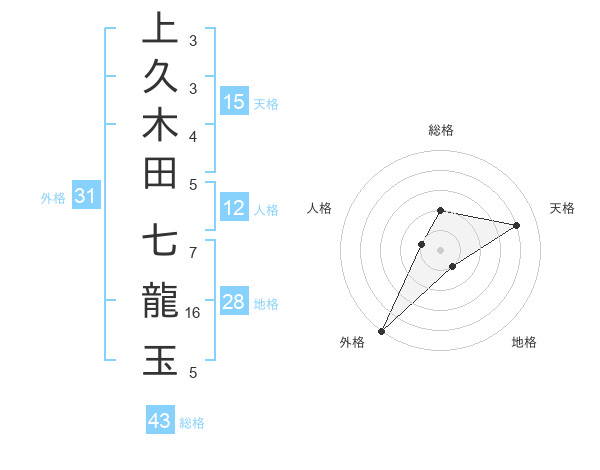 上久木田 七龍玉さんを姓名の画数から五運を鑑定