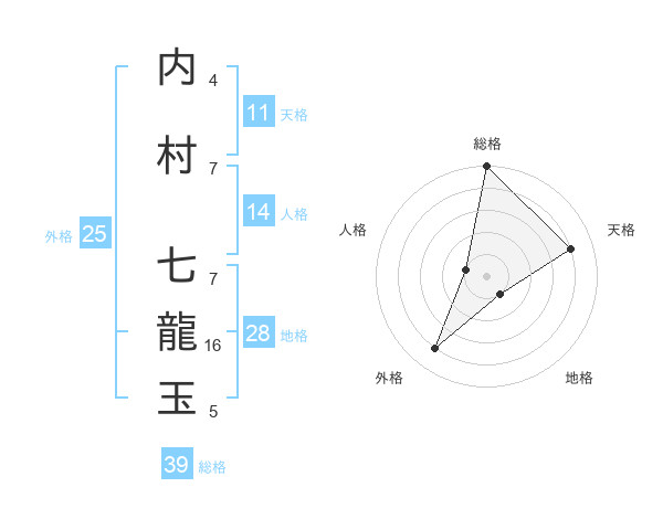 内村 七龍玉さんを姓名の画数から五運を鑑定