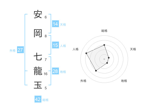 安岡 七龍玉さんを姓名の画数から五運を鑑定