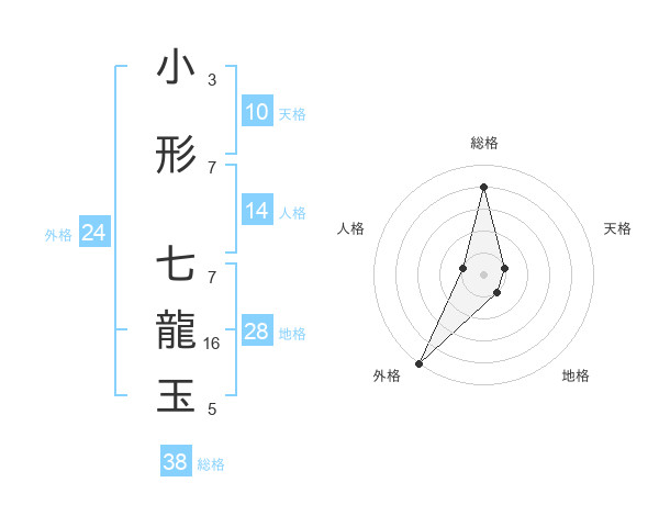 小形 七龍玉さんの総格は38画の4点!