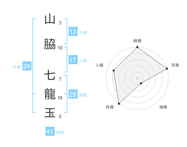 山脇 七龍玉さんを姓名の画数から五運を鑑定
