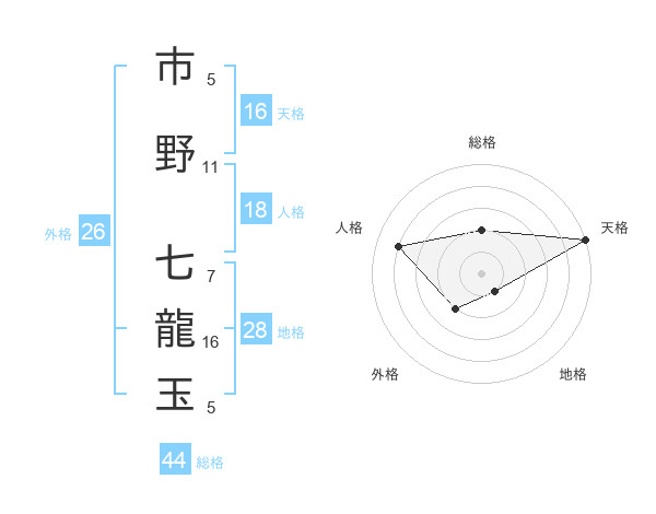 市野 七龍玉さんを姓名の画数から五運を鑑定