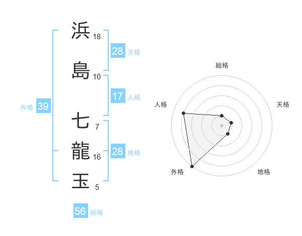 浜島 七龍玉さんを姓名の画数から五運を鑑定