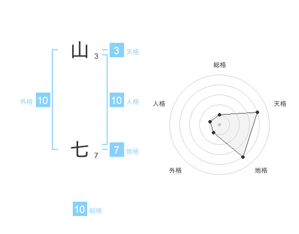 山 七さんの外格は10画の1点!