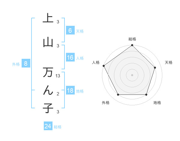 上山 万ん子さんを姓名の画数から五運を鑑定