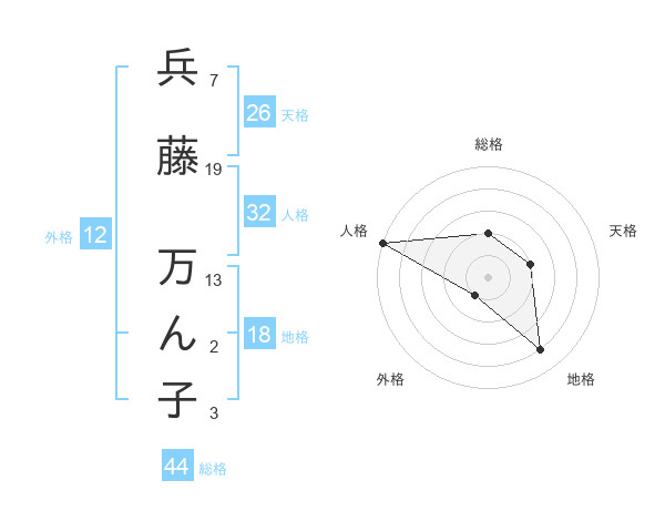 兵藤 万ん子さんの総格は44画の2点!
