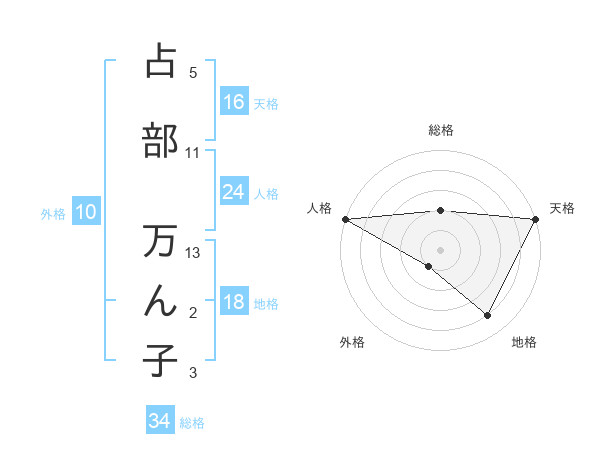 占部 万ん子さんを姓名の画数から五運を鑑定