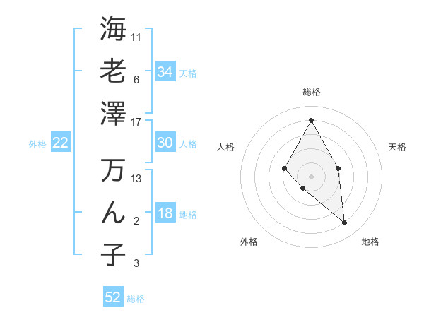 海老澤 万ん子さんの総格は52画の4点!