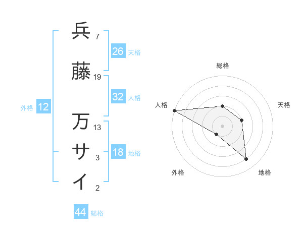 兵藤 万サイさんの総格は44画の2点!