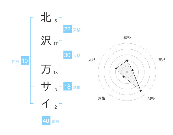 北沢 万サイさんの総格は40画の2点!
