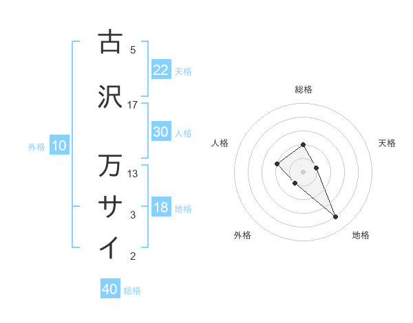 古沢 万サイさんを姓名の画数から五運を鑑定