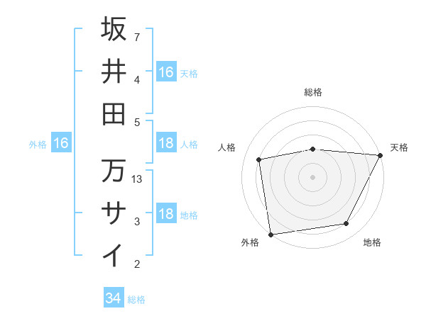 坂井田 万サイさんを姓名の画数から五運を鑑定