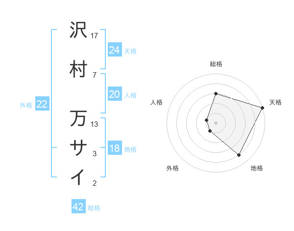 沢村 万サイさんを姓名の画数から五運を鑑定