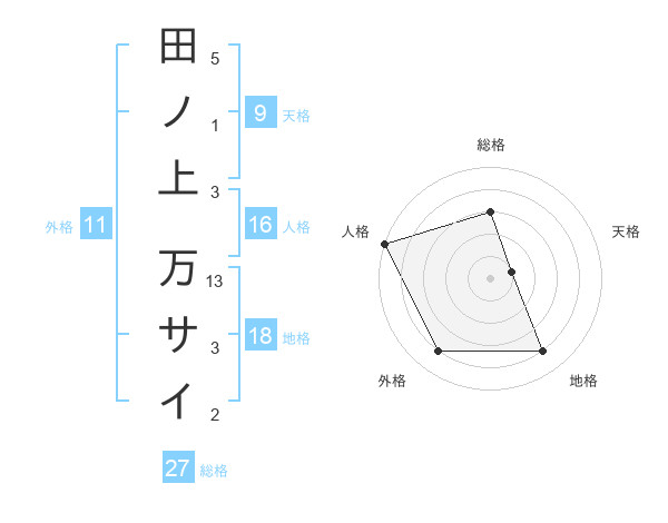田ノ上 万サイさんを姓名の画数から五運を鑑定