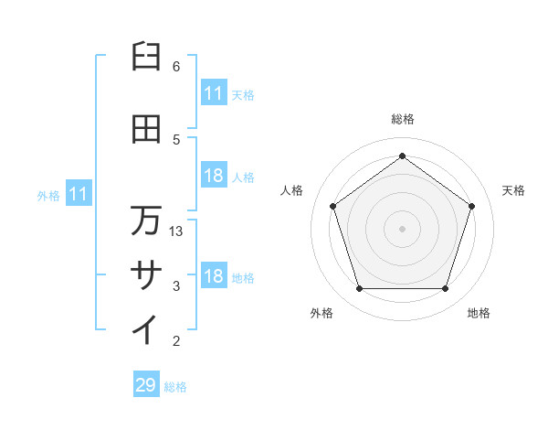 臼田 万サイさんの天格は11画の4点!