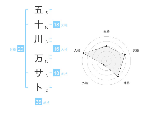 五十川 万サトさんを姓名の画数から五運を鑑定