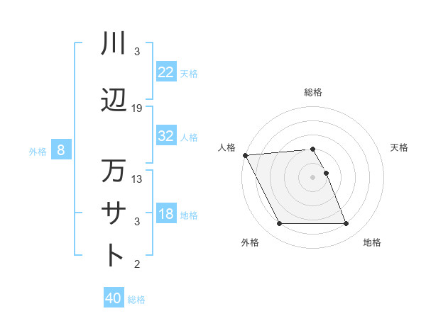 川辺 万サトさんを姓名の画数から五運を鑑定