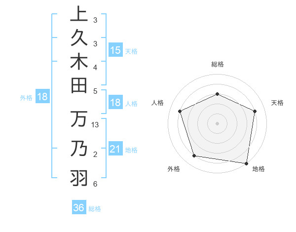 上久木田 万乃羽さんを姓名の画数から五運を鑑定