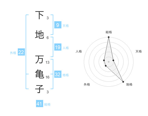 下地 万亀子さんの外格は22画の1点!