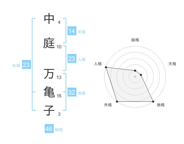 中庭 万亀子さんを姓名の画数から五運を鑑定