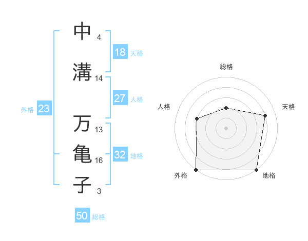 中溝 万亀子さんの外格は23画の5点!