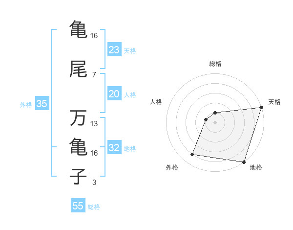 亀尾 万亀子さんの外格は35画の4点!