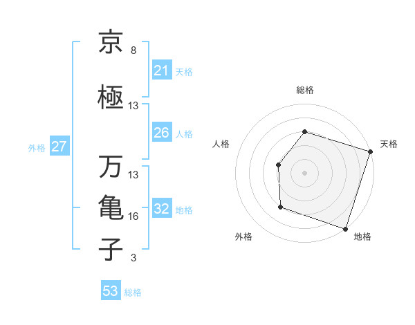 京極 万亀子さんを姓名の画数から五運を鑑定