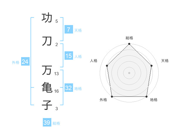 功刀 万亀子さんを姓名の画数から五運を鑑定