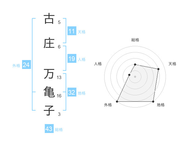 古庄 万亀子さんを姓名の画数から五運を鑑定