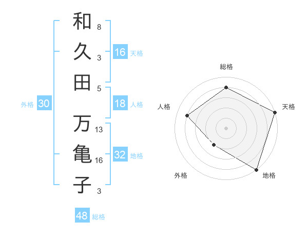 和久田 万亀子さんを姓名の画数から五運を鑑定