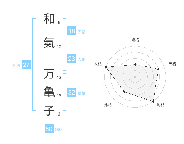 和氣 万亀子さんを姓名の画数から五運を鑑定