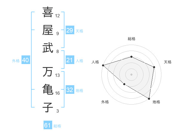 喜屋武 万亀子さんを姓名の画数から五運を鑑定
