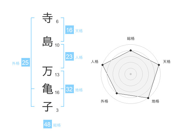 寺島 万亀子さんの天格は16画の5点!