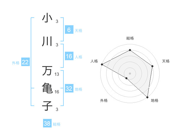 小川 万亀子さんを姓名の画数から五運を鑑定